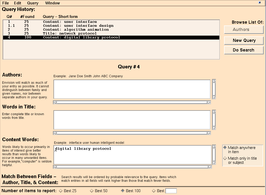 ENVISION Query Window